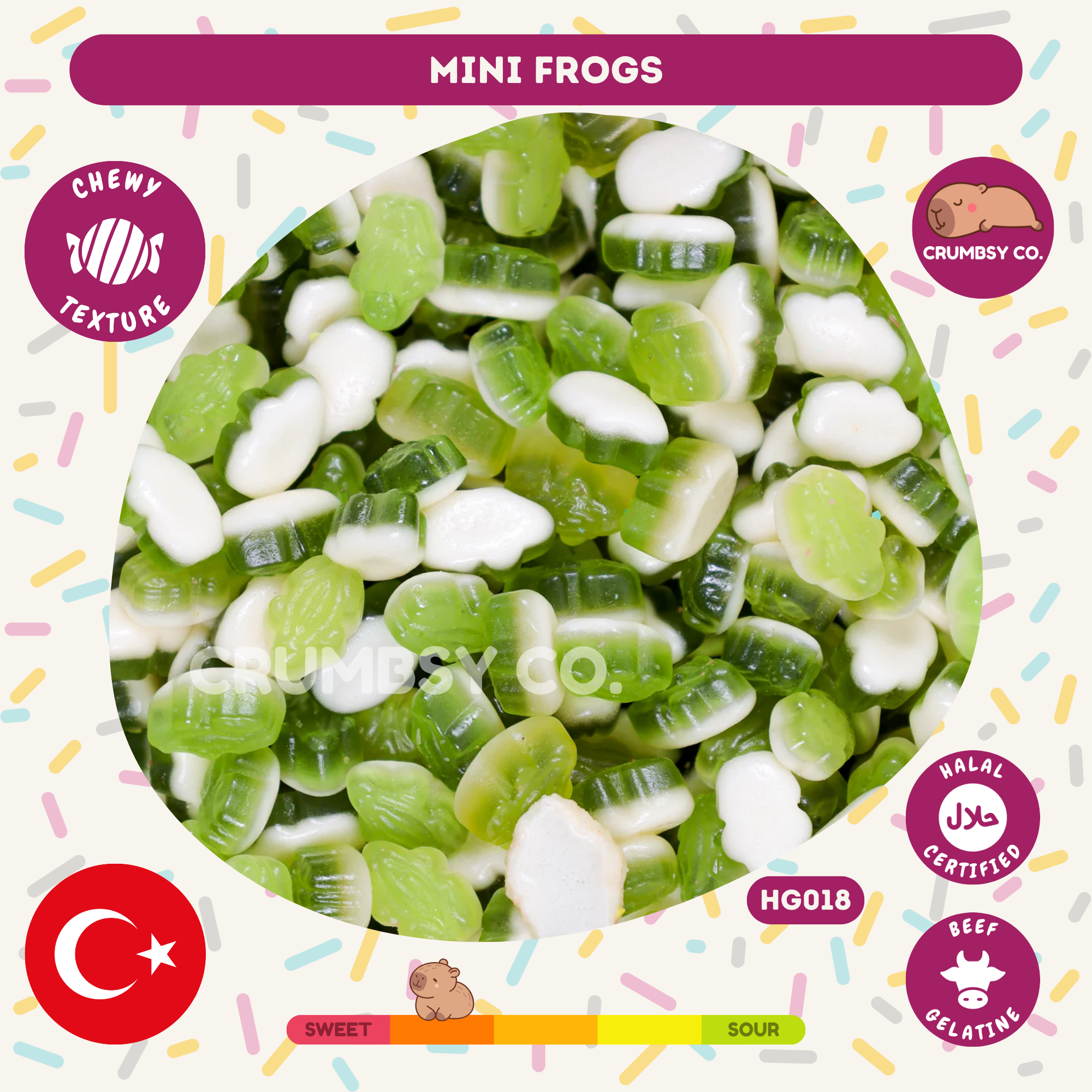 Enjoy the fruity burst of Mini Frogs soft, chewy sweets with a bright apple flavour and playful frog shapes. Perfect for sharing or enjoying as a fun treat anytime.